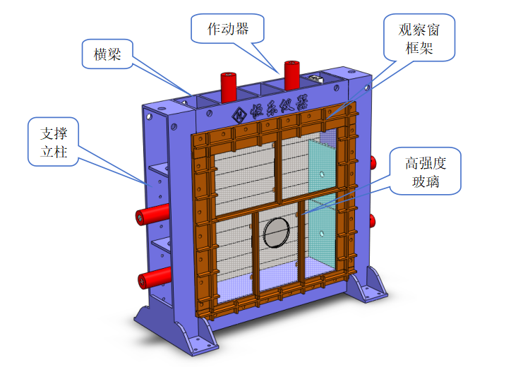 点荷载:2个加载缸,最大加载能力10kN,可在横梁上自由移动,可装配不同形状加载板。