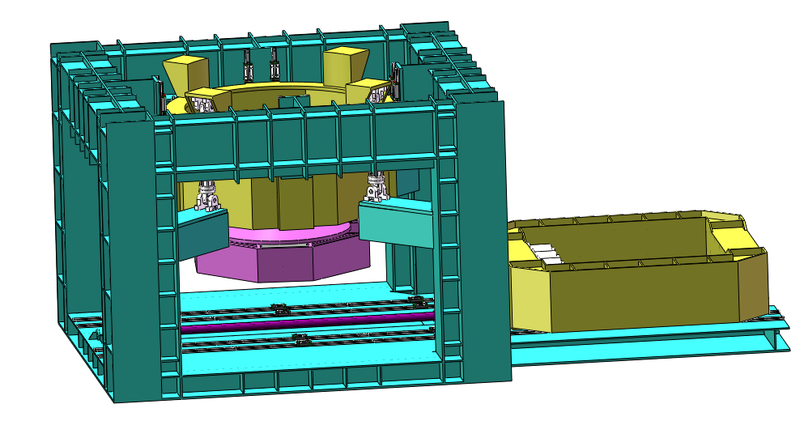 3)主机架采用高强度结构,尺寸:长(5米-10 米),宽(4 米-6米),高(4米-6米),可承受≥1600kN 刀盘推力和刀盘扭矩,试样箱可推出装样,预留滚刀直线破岩装置接口;